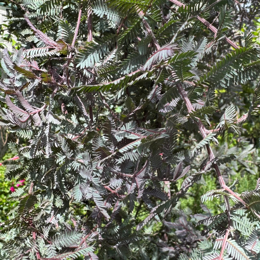 La Acacia morada es un árbol ornamental de copa amplia y follaje denso, apreciado por su resistencia y por sus atractivas flores violáceas que dan un toque colorido al paisaje.