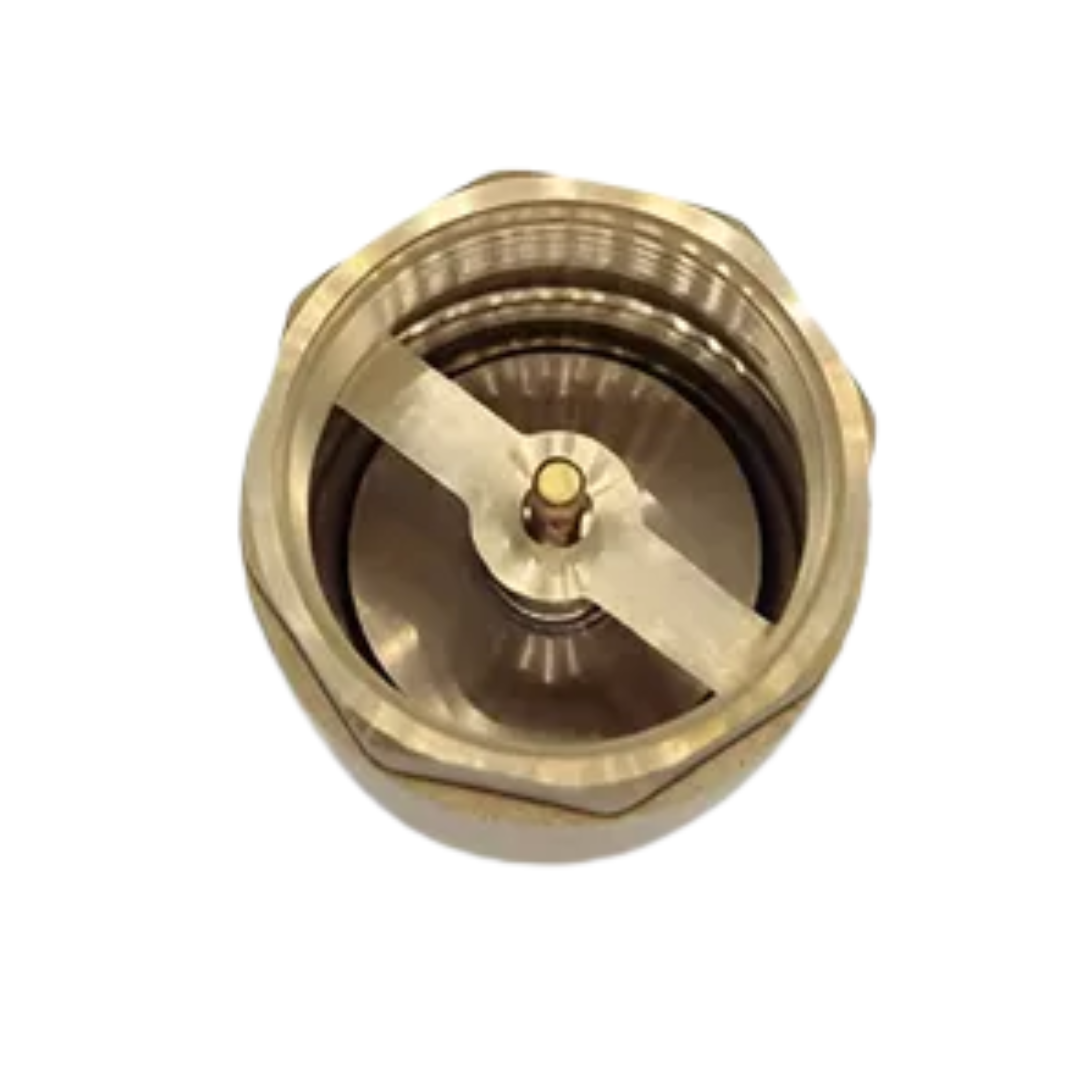 Válvula check de latón de 1", diseñada para permitir el flujo del agua en un solo sentido y evitar el retorno que pueda causar daños en bombas, tuberías o equipos. Su cuerpo de latón ofrece alta resistencia a la presión, temperatura y corrosión, garantizando un funcionamiento confiable y una larga vida útil.